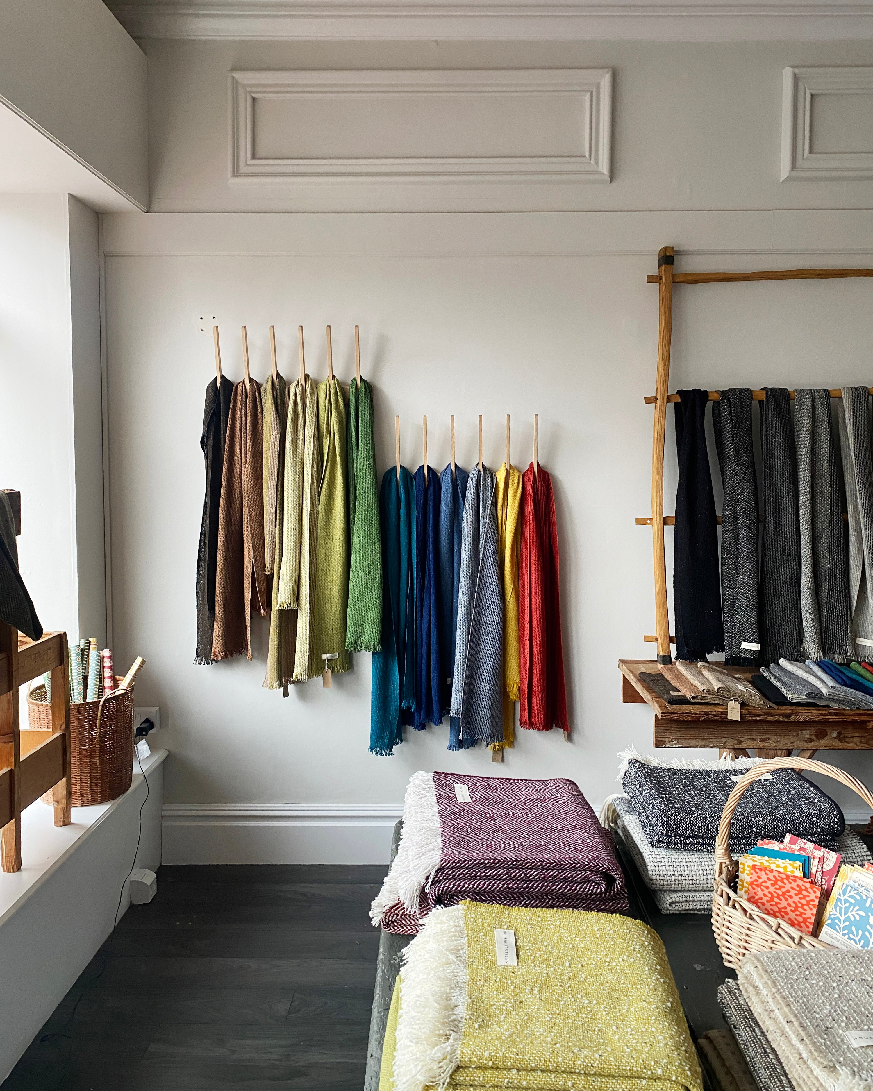 We specialise in using natural fibres such as wool, cotton, and linen, spun locally to create unique textures in our yarns. Our collection features heavy-duty furnishing fabrics, cherished by upholsterers and curtain designers for their texture and drape, as well as a range of homeware items, including cushions, blankets, and tableware. Our fashion accessories include stylish men’s and women’s scarves and neck warmers available in a variety of autumnal and classic shades.