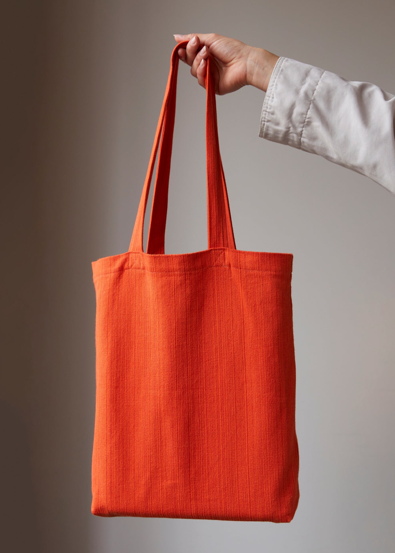 Our tote bag, designed by Gerd Hay-Edie in 1964, is a timeless piece woven in a striking blend of rich orange and deep red threads. Inspired by the bold hues of autumnal landscapes, this durable cotton weave is both practical and beautifully designed. The spacious interior makes it ideal for everyday essentials, while the comfortable shoulder straps ensure effortless wear.