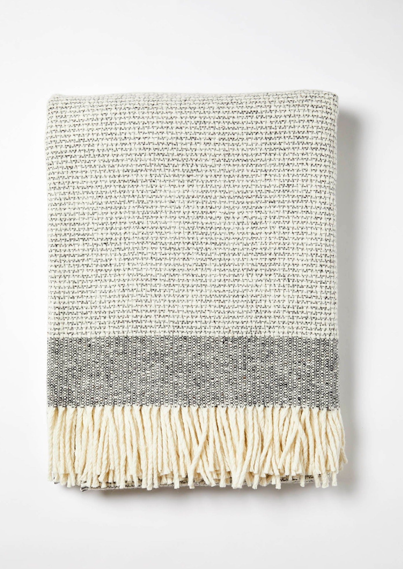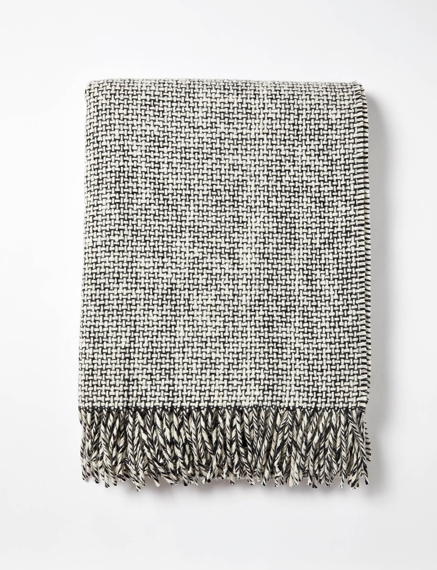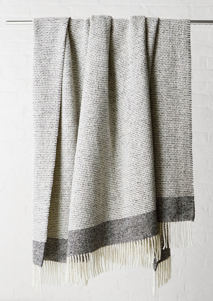 Mended Tweed Large Bed Throw - Charcoal Grey with band