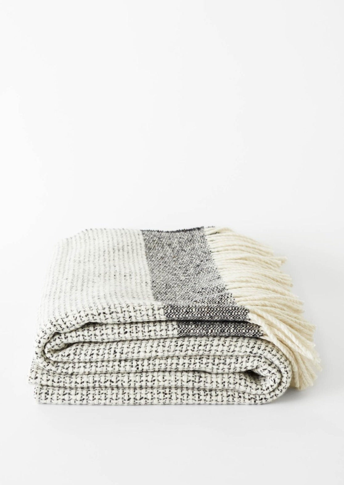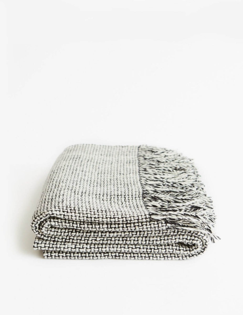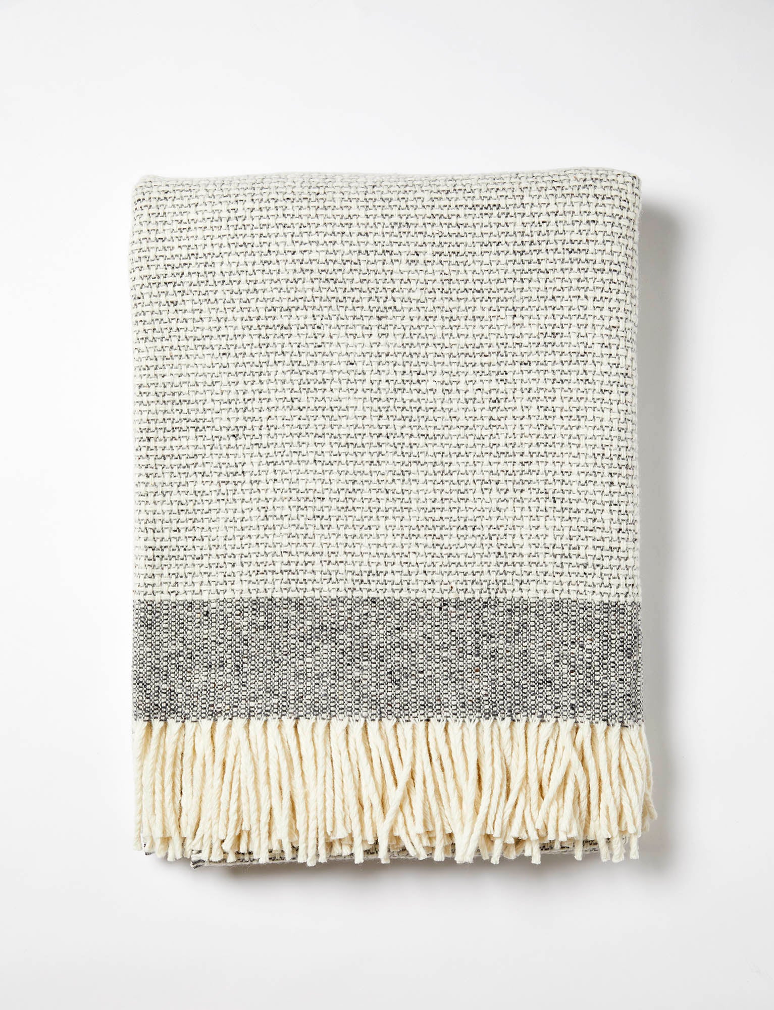 Mended Tweed Large Bed Throw - Charcoal Grey with band