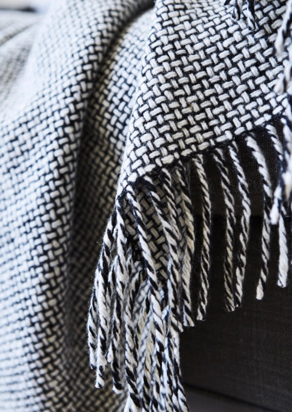 Mended Tweed Sofa Throw - Charcoal Grey with band