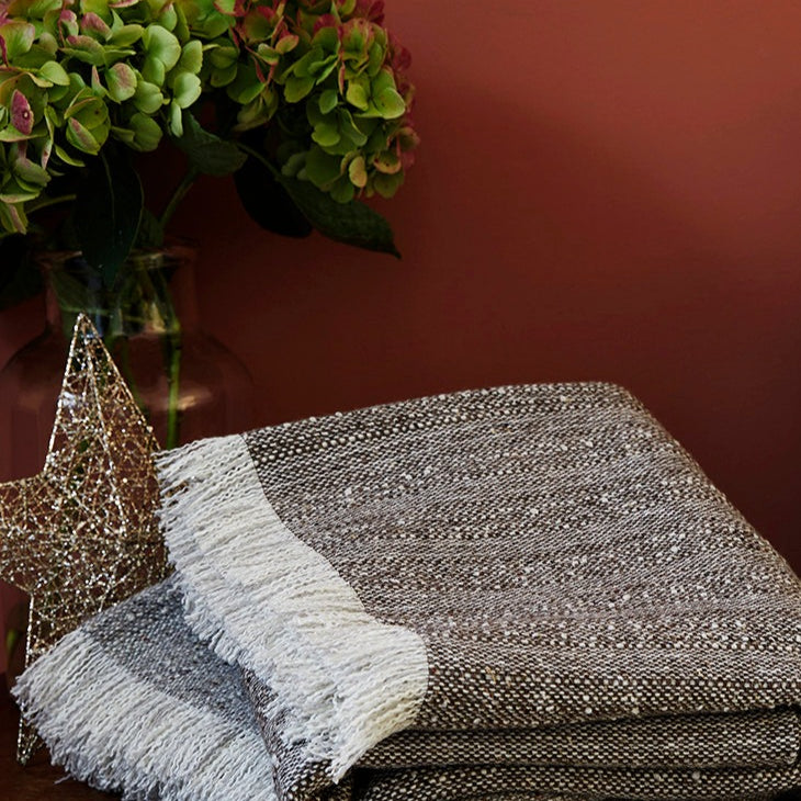 Transform your living space with the luxurious warmth, texture, and natural beauty of our premium collection of woven sofa and bed throws. Each throw, woven on vintage power-looms, is crafted from richly textured wool yarns in natural tones, reflecting the earthy hues of the Mourne Mountains.