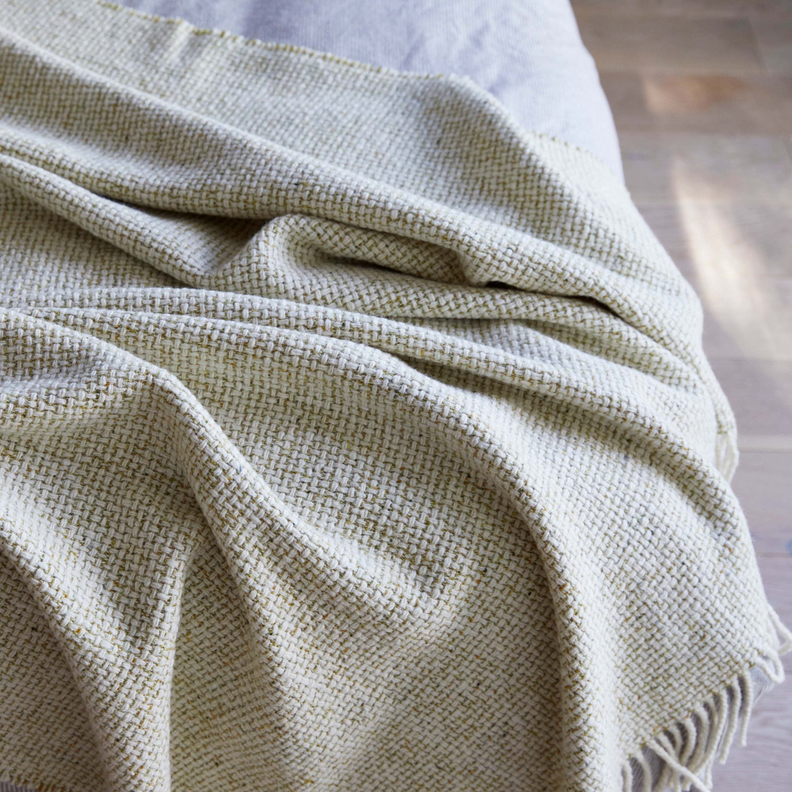 Each blanket is crafted with care, highlighting the rich heritage of our craft. The naturally spun wool fibres used in the Mended Tweed create a soft yet durable texture that is inviting to the touch, embodying both comfort and luxury.