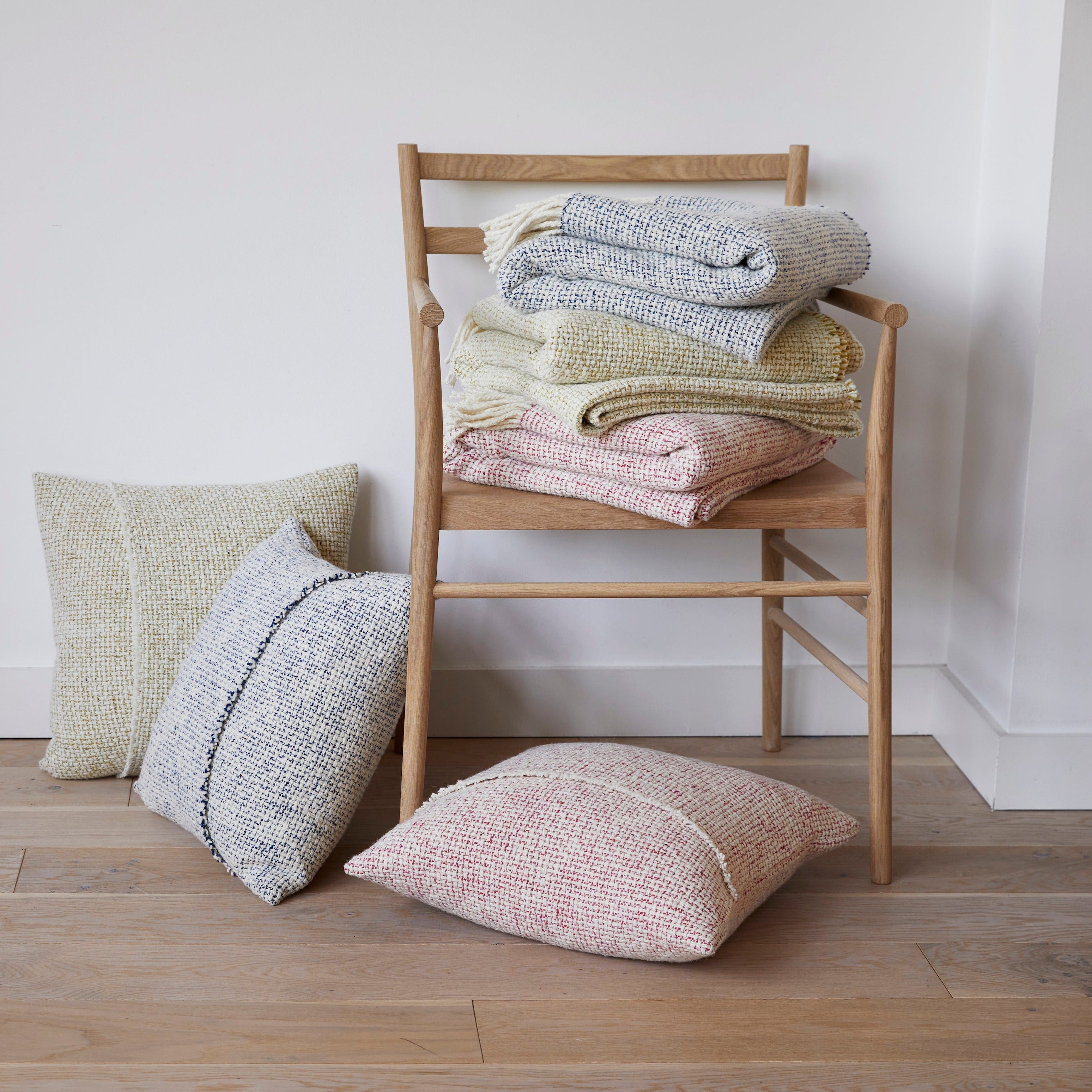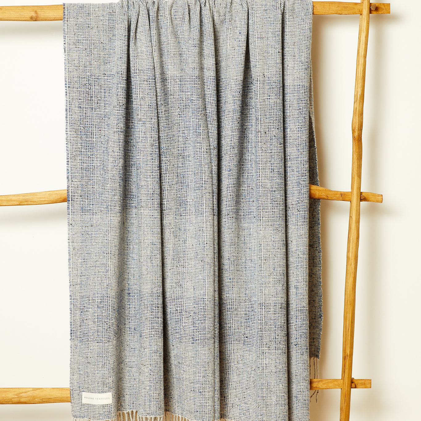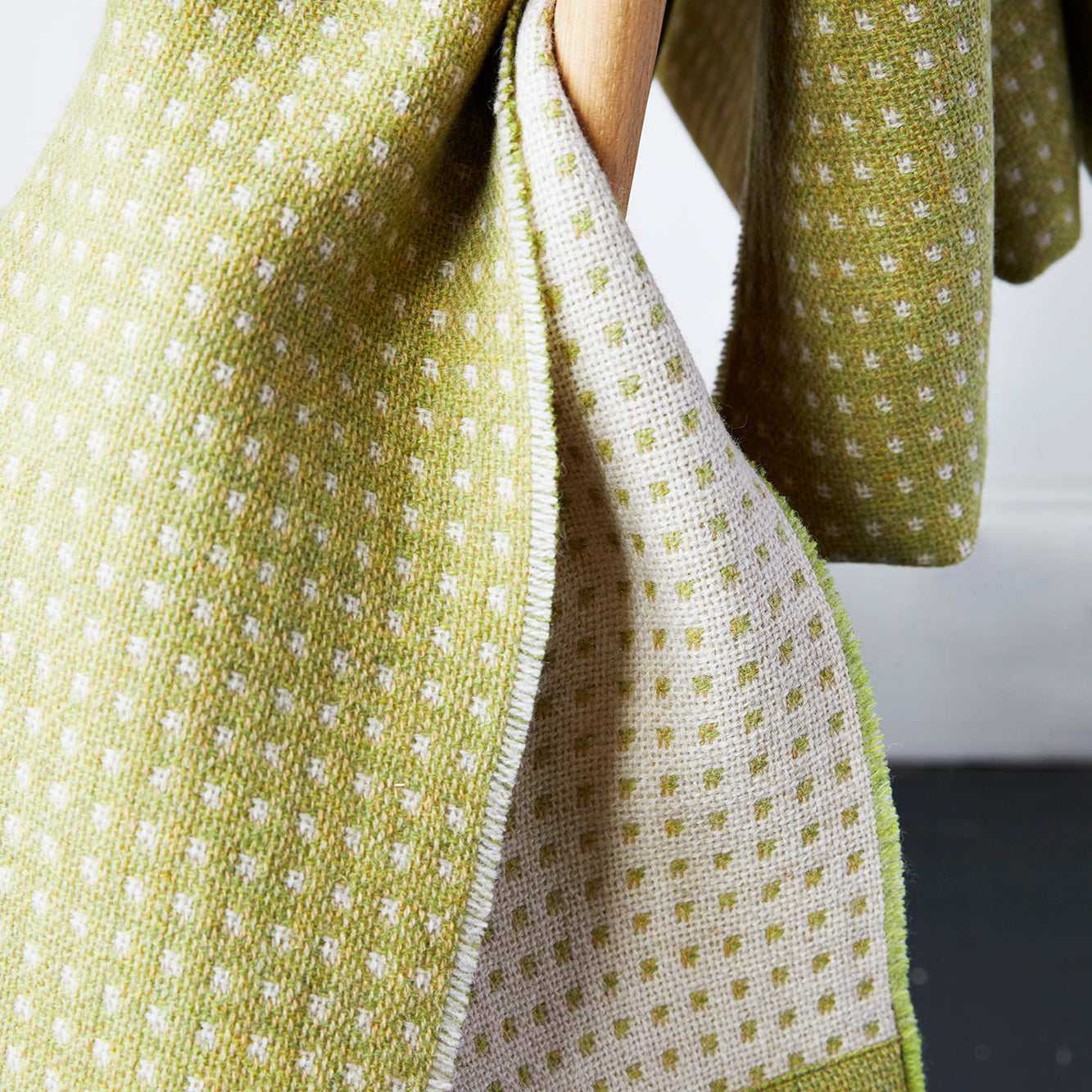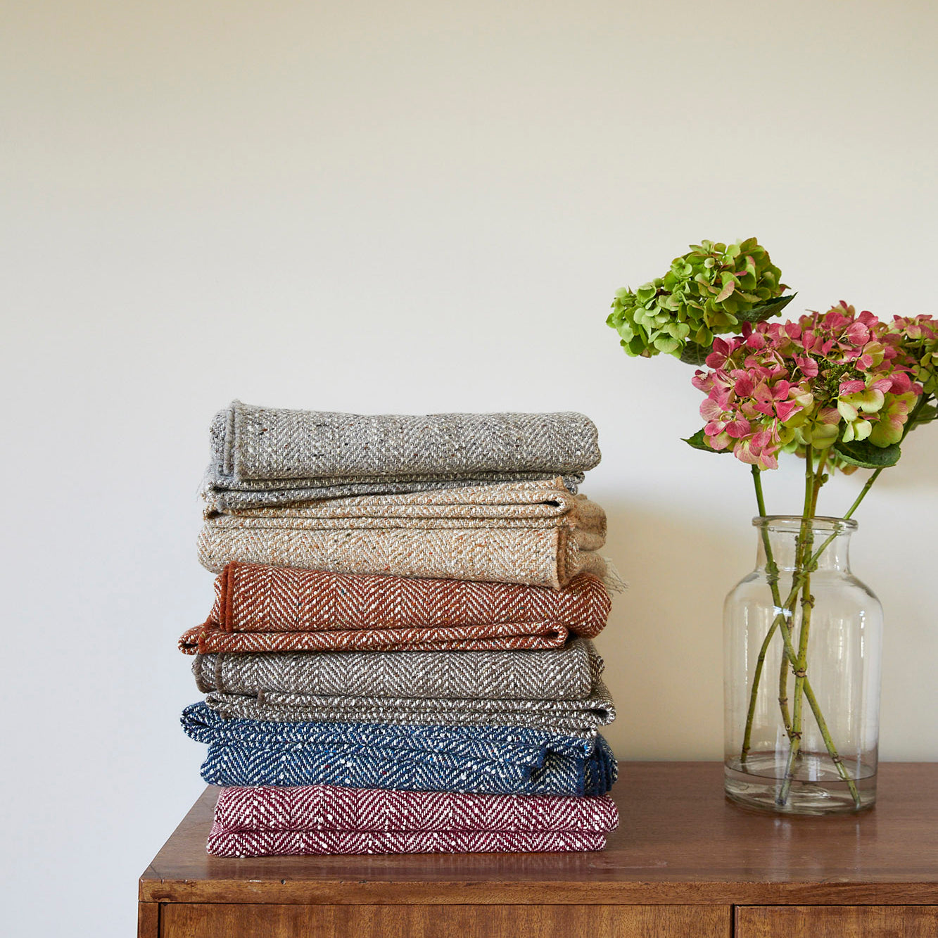 The Maldwyn Dot, with its double weave, creates a denser, warmer fabric perfect for cooler evenings. The Mended Tweed features a distinctive weaving pattern that results in a thick, warm throw, while the iconic Tweed Emphasize combines thick and thin yarns for a beautifully textured finish.