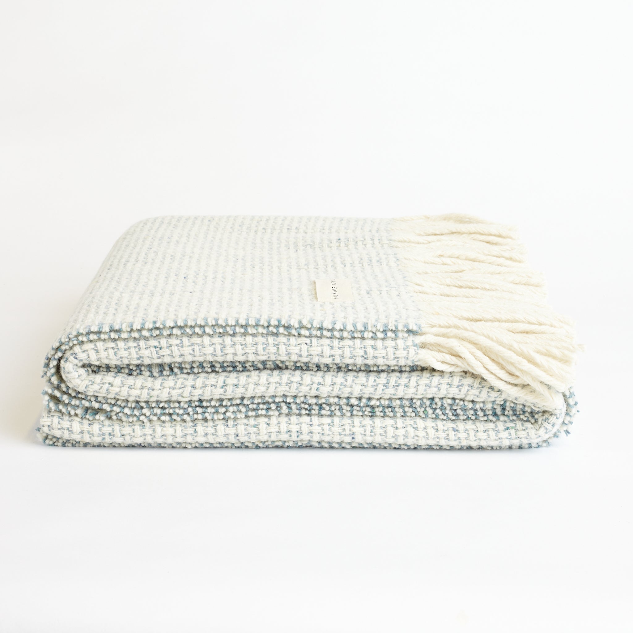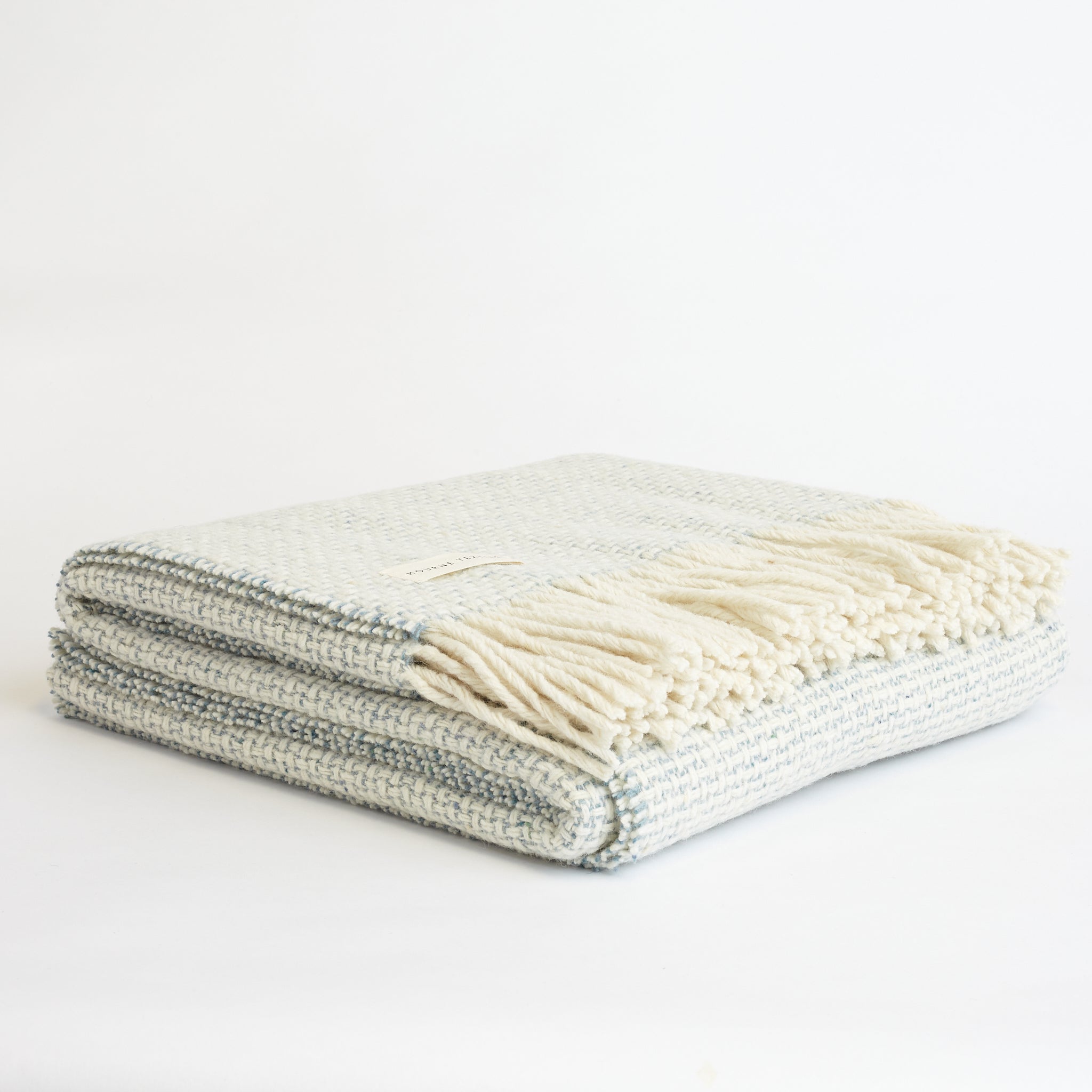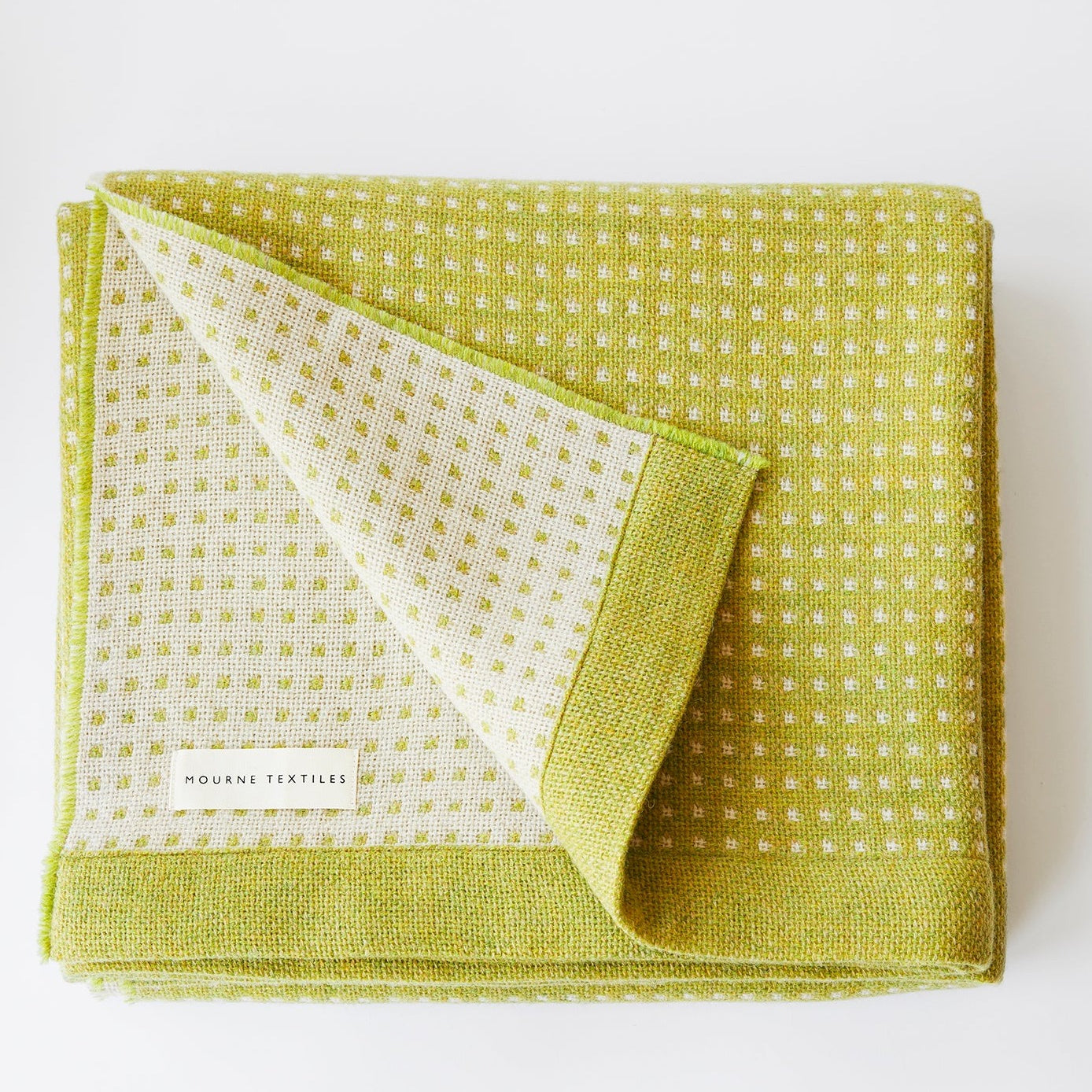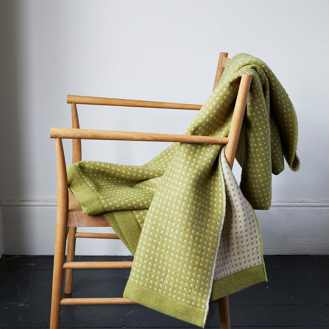 The Maldwyn Dot, with its double weave, creates a denser, warmer fabric perfect for cooler evenings. The Mended Tweed features a distinctive weaving pattern that results in a thick, warm throw, while the iconic Tweed Emphasize combines thick and thin yarns for a beautifully textured finish.