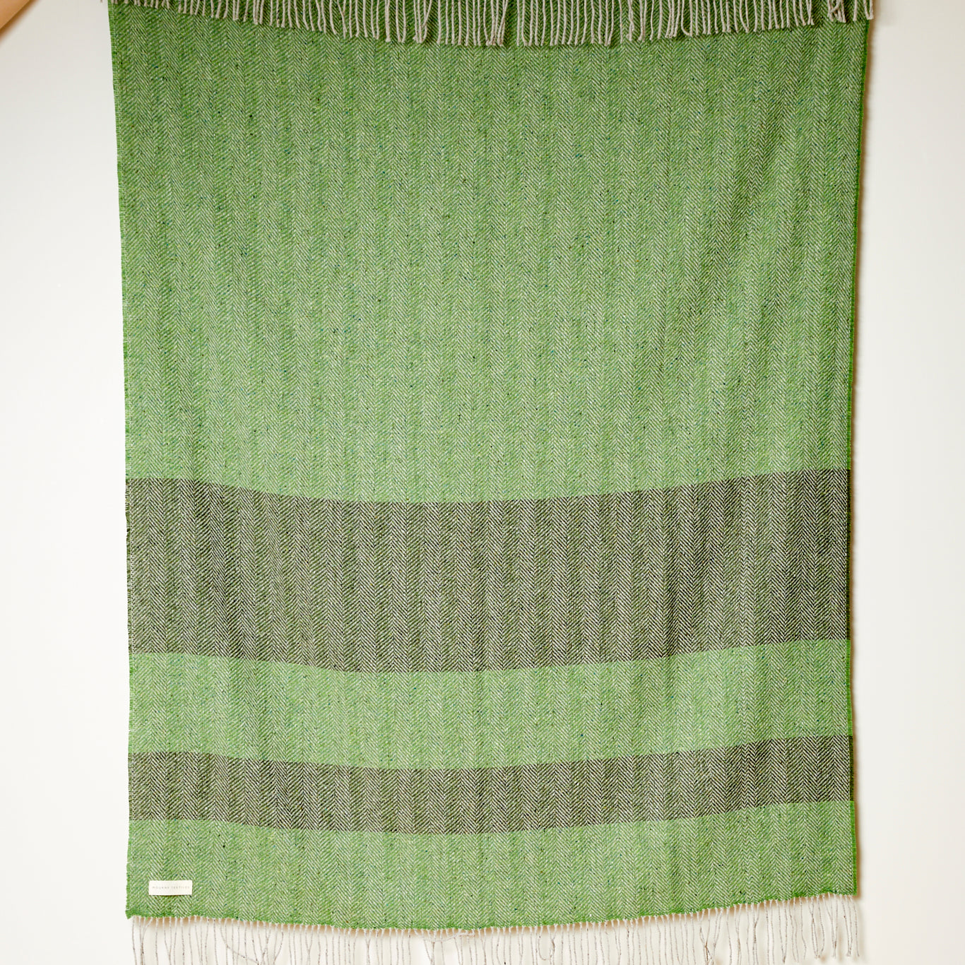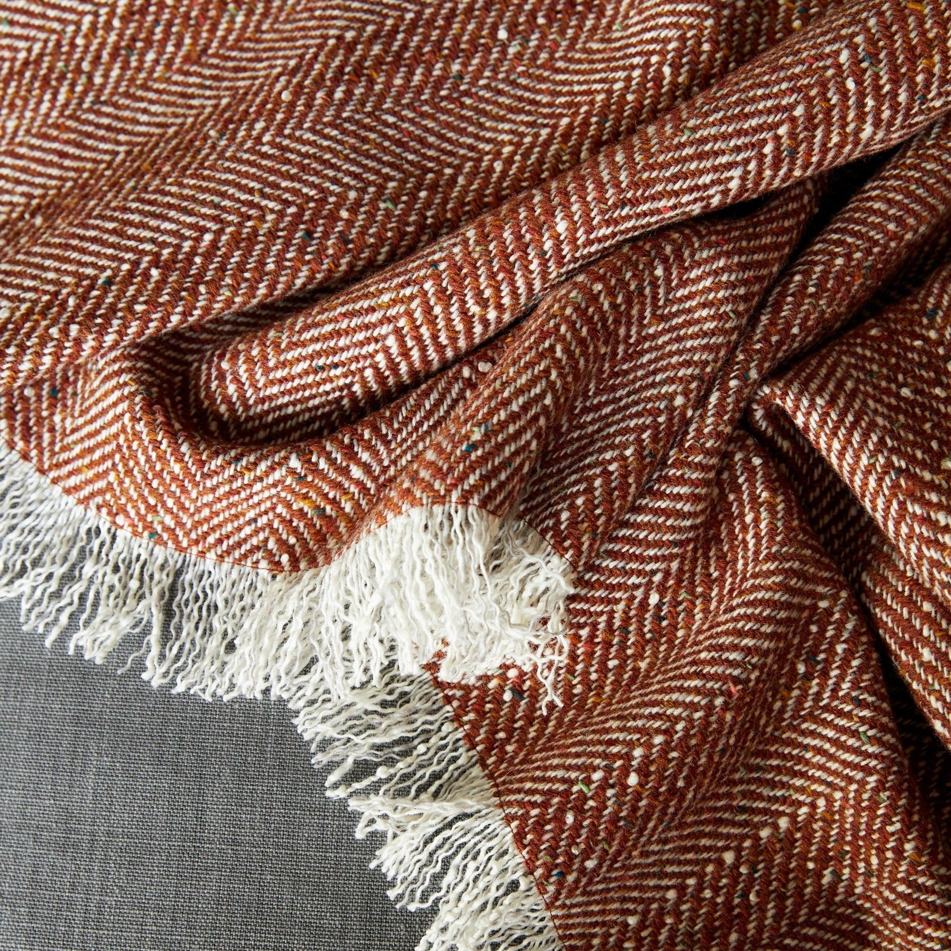 The Mourne Classic tweed, known for its uneven threading, gives a uniquely tactile quality, and the Mourne Trio uses custom-spun yarns to produce a highly textured fabric. Finally, the Textured Herringbone throw introduces a variation in texture, with differing yarn thicknesses and occasional loops, all offset by the traditional zig-zag Herringbone pattern, adding depth and richness.
