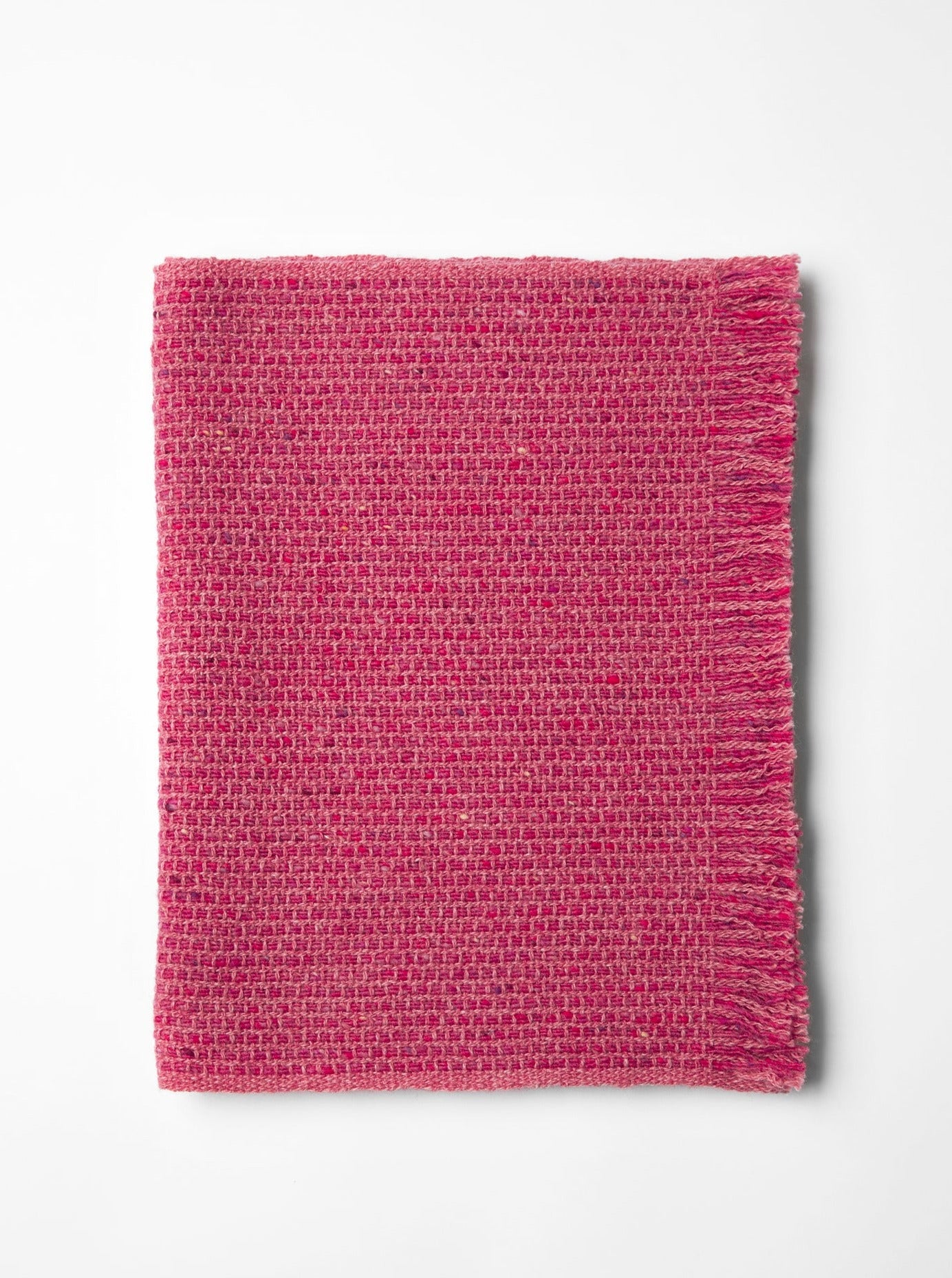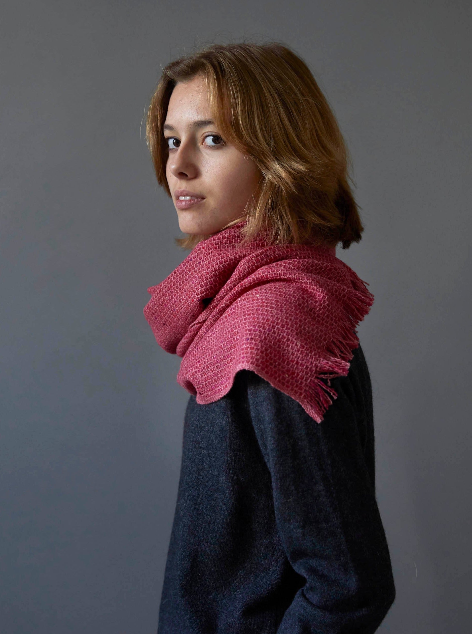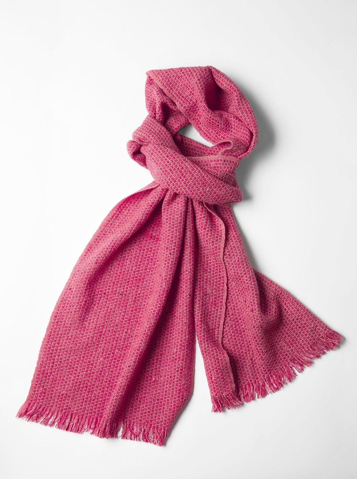 The Foxglove scarf embodies the vibrant essence of the blooming wildflowers that grace the countryside. Woven in two captivating shades of pink, this scarf showcases a striking warm pink base, flecked with hints of red, orange, and blue, creating a delicate purplish hue reminiscent of sun-kissed petals.