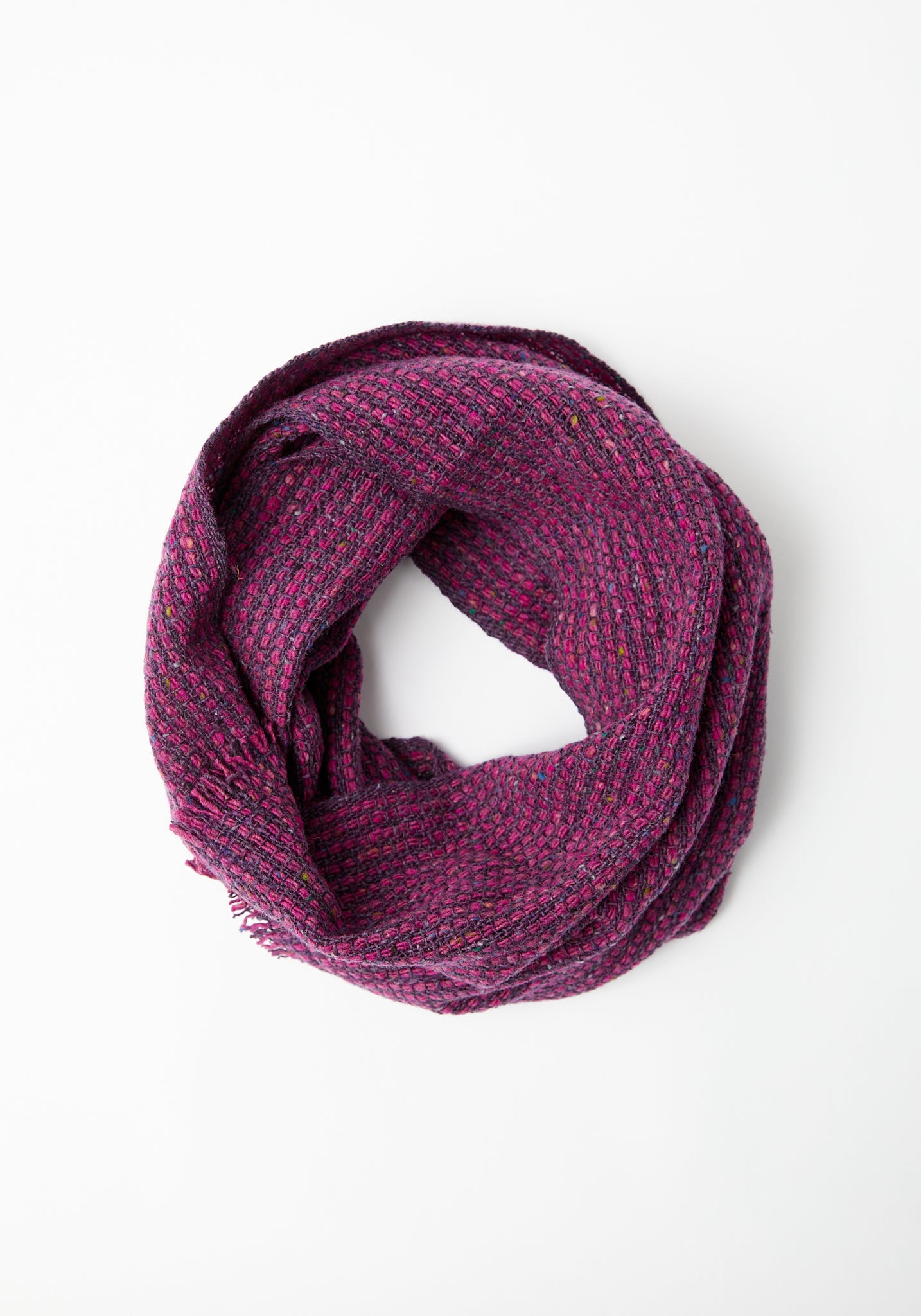 Designed for both style and warmth, these versatile pieces can be worn as a loose, long open loop or twisted once for a snug, closer fit around the neck.