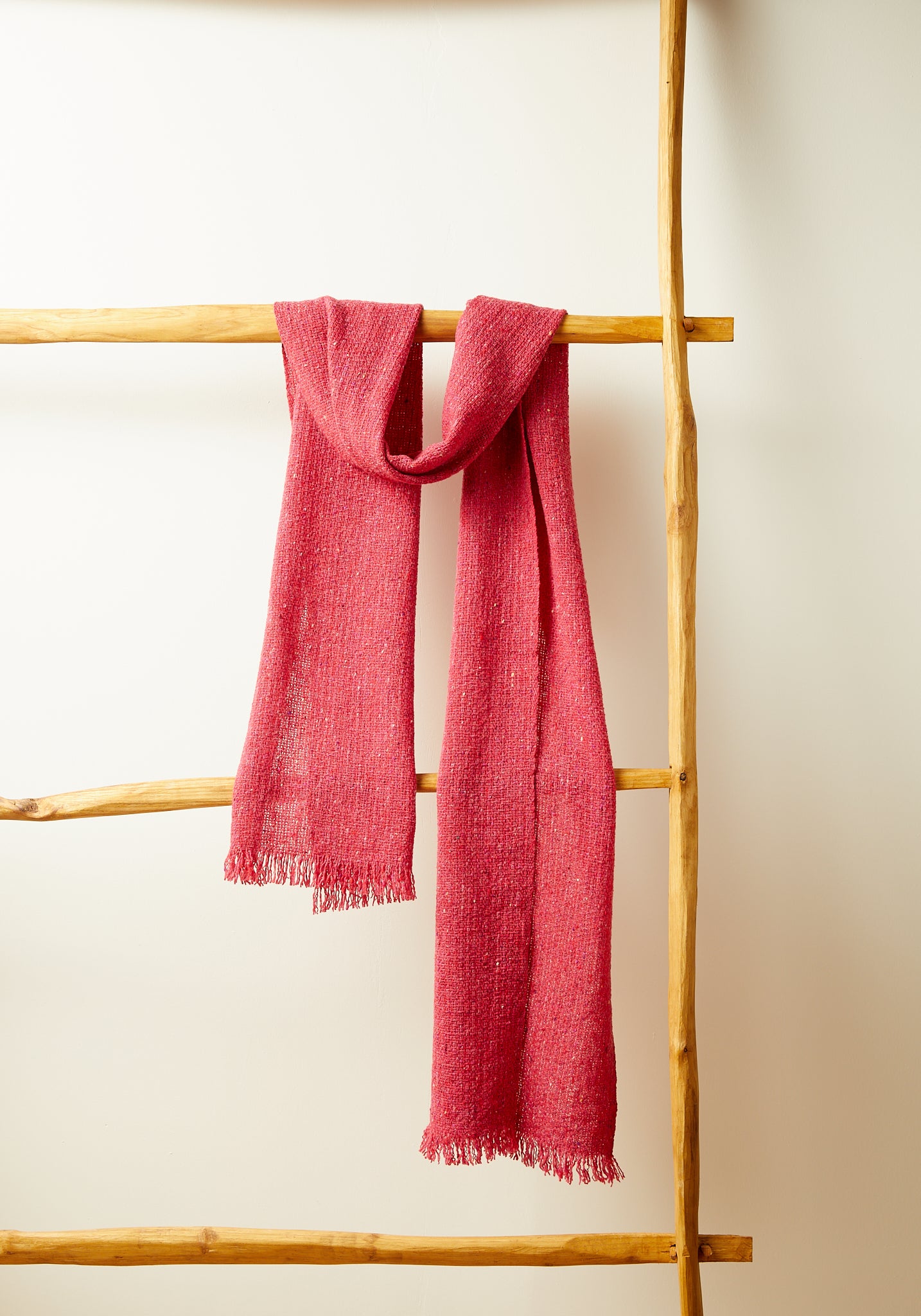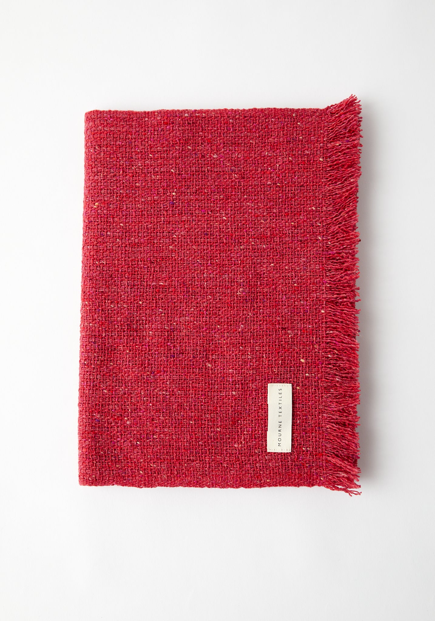 The Fuchsia woven scarf captures the vibrant beauty of wildflower meadows in full bloom. Woven with two weights of yarn—one thick and one thin—it creates a striking texture that reflects Mourne Textiles’ dedication to craftsmanship.