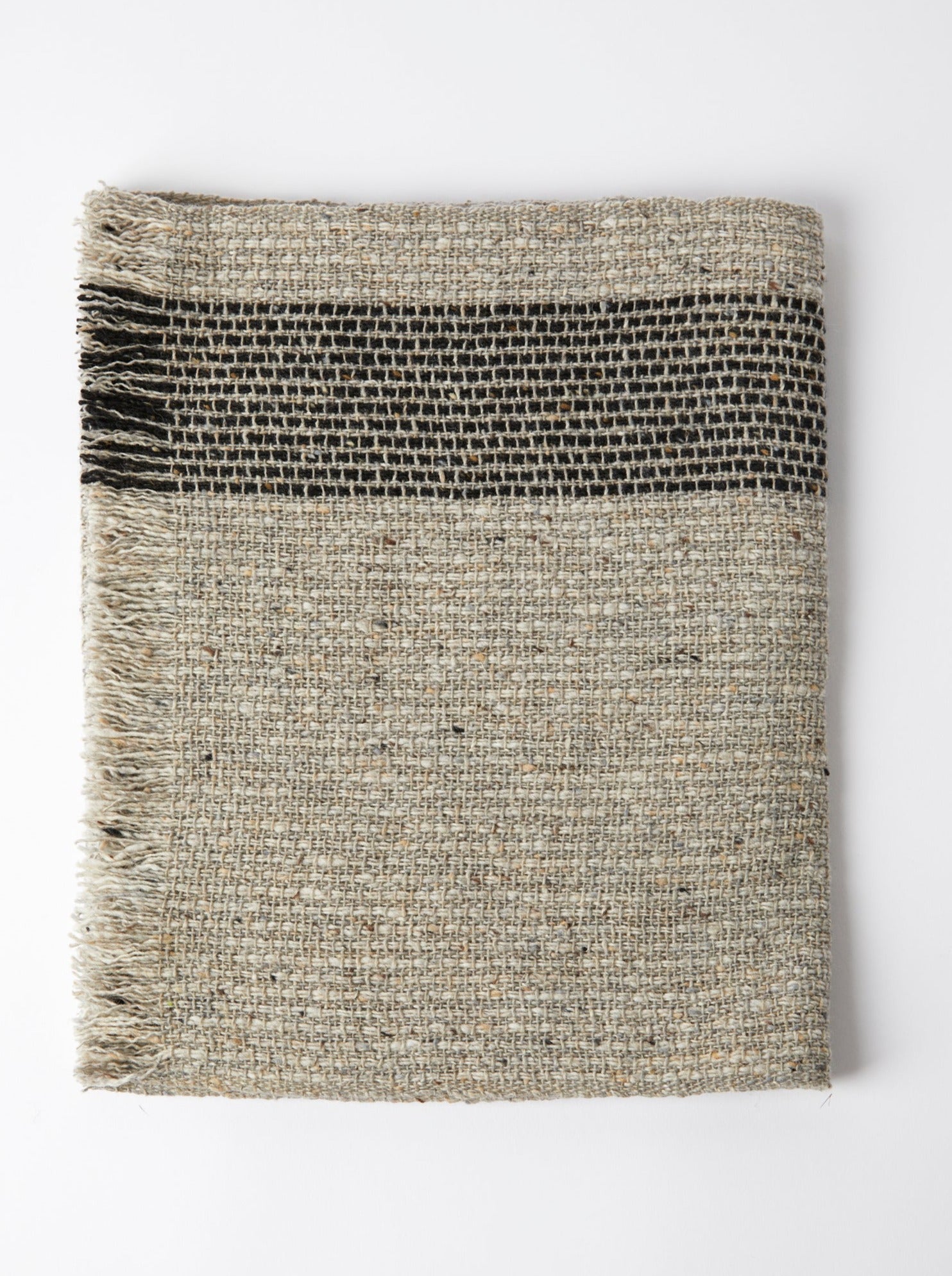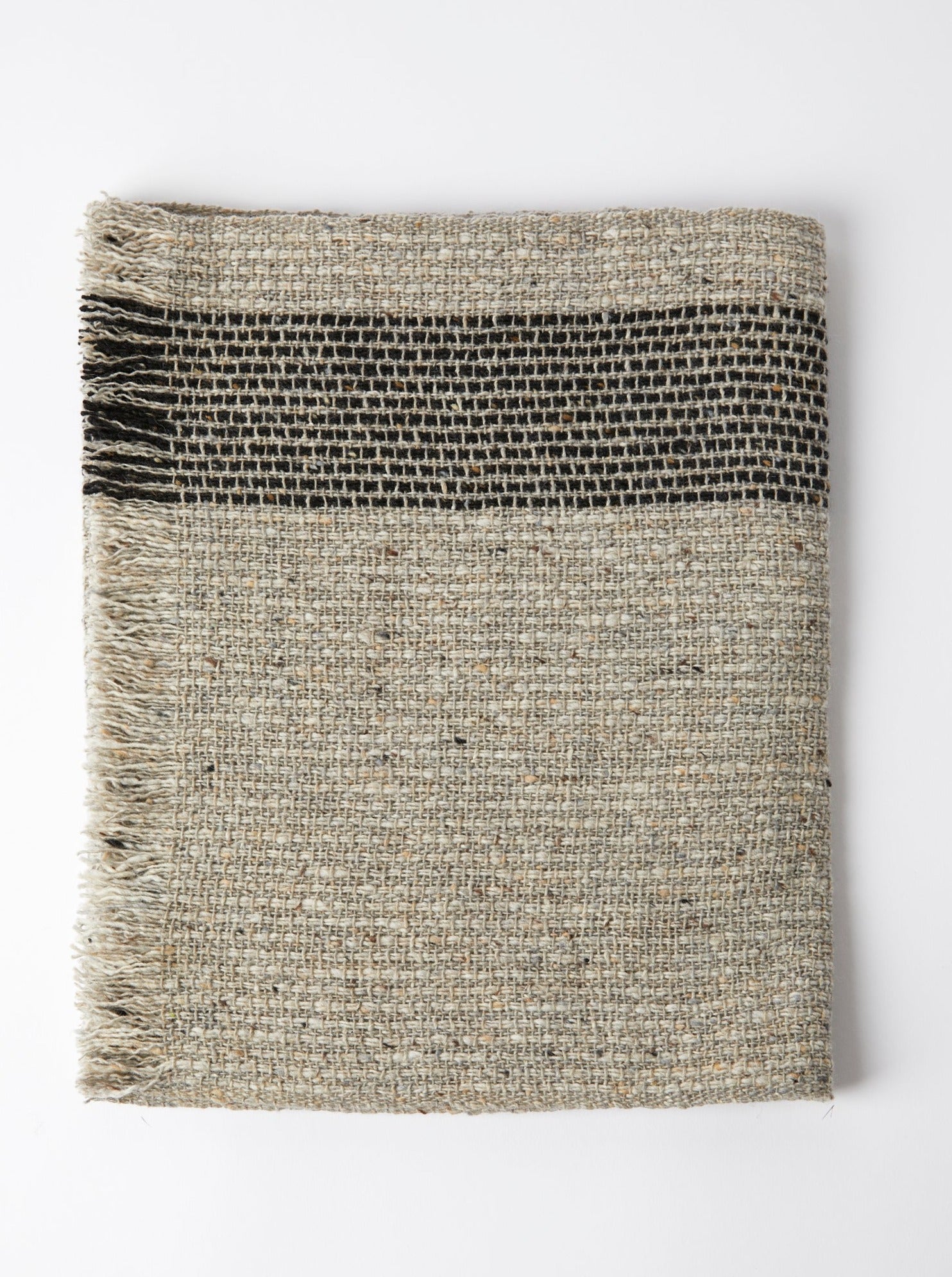 The Ash Stripe Scarf embodies a harmonious blend of muted elegance and natural warmth, inspired by the serene landscapes of the Mourne Mountains.