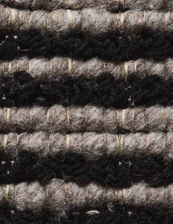 We honour the same materials and techniques Gerd used over sixty years ago to produce this rug true to the original. Its combination of three yarn types create a unique surface texture: the linen warp adds strength, while looped woolen yarn and unspun hand twisted fleece offer softness and warmth.
