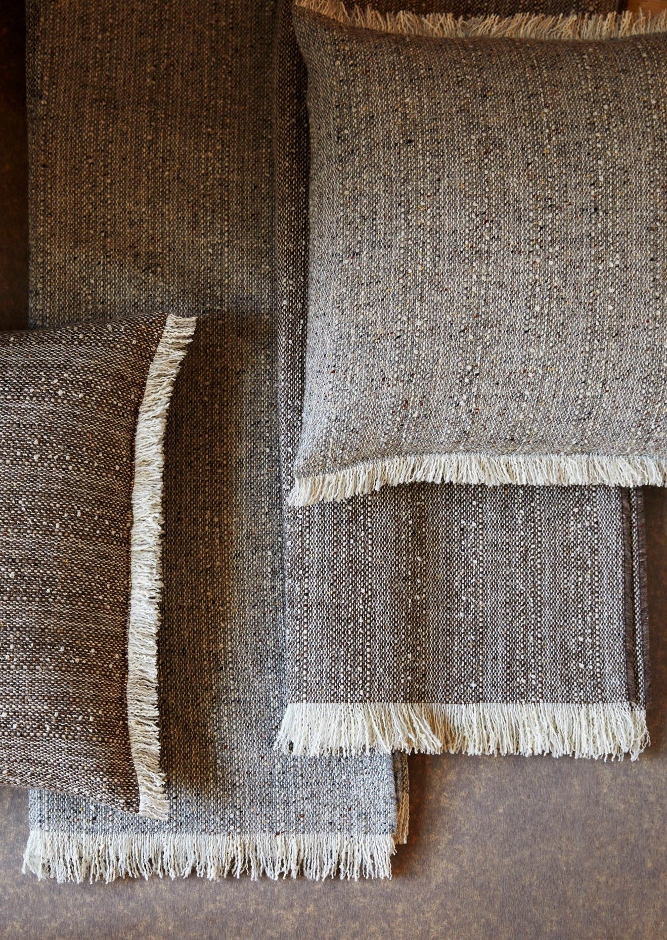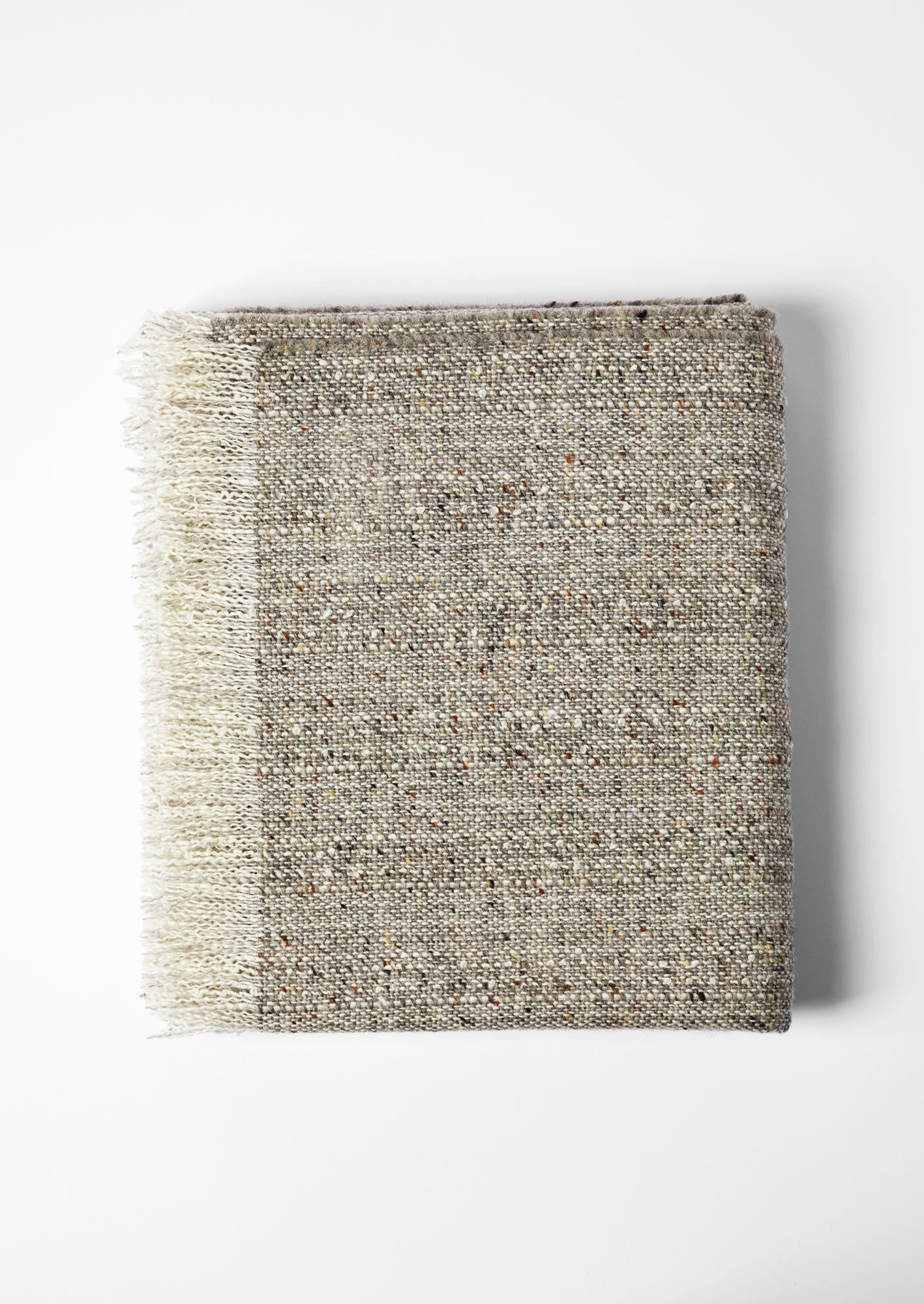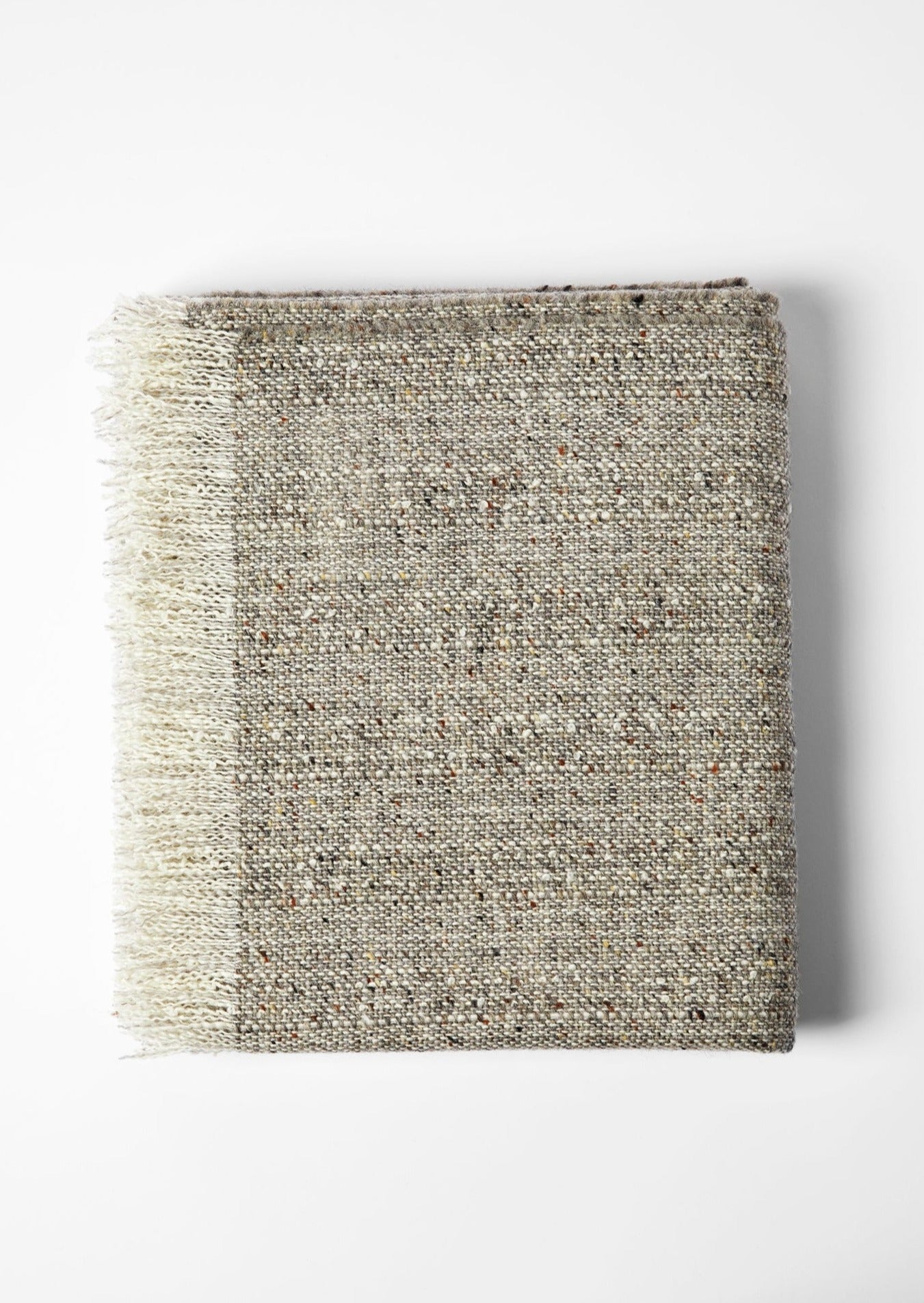 The Mourne Classic Granite blanket beautifully reflects the rugged charm of the Mourne Mountains, with a carefully curated blend of natural tones. The primary yarn, a soft, warm natural colour, serves as a gentle backdrop to the standout mottled grey and brown yarn, which is interspersed with flecks of black and warmer brown hues. This sophisticated combination creates an earthy palette reminiscent of the weathered granite stones that dot the landscape, evoking a sense of serenity and timeless elegance.