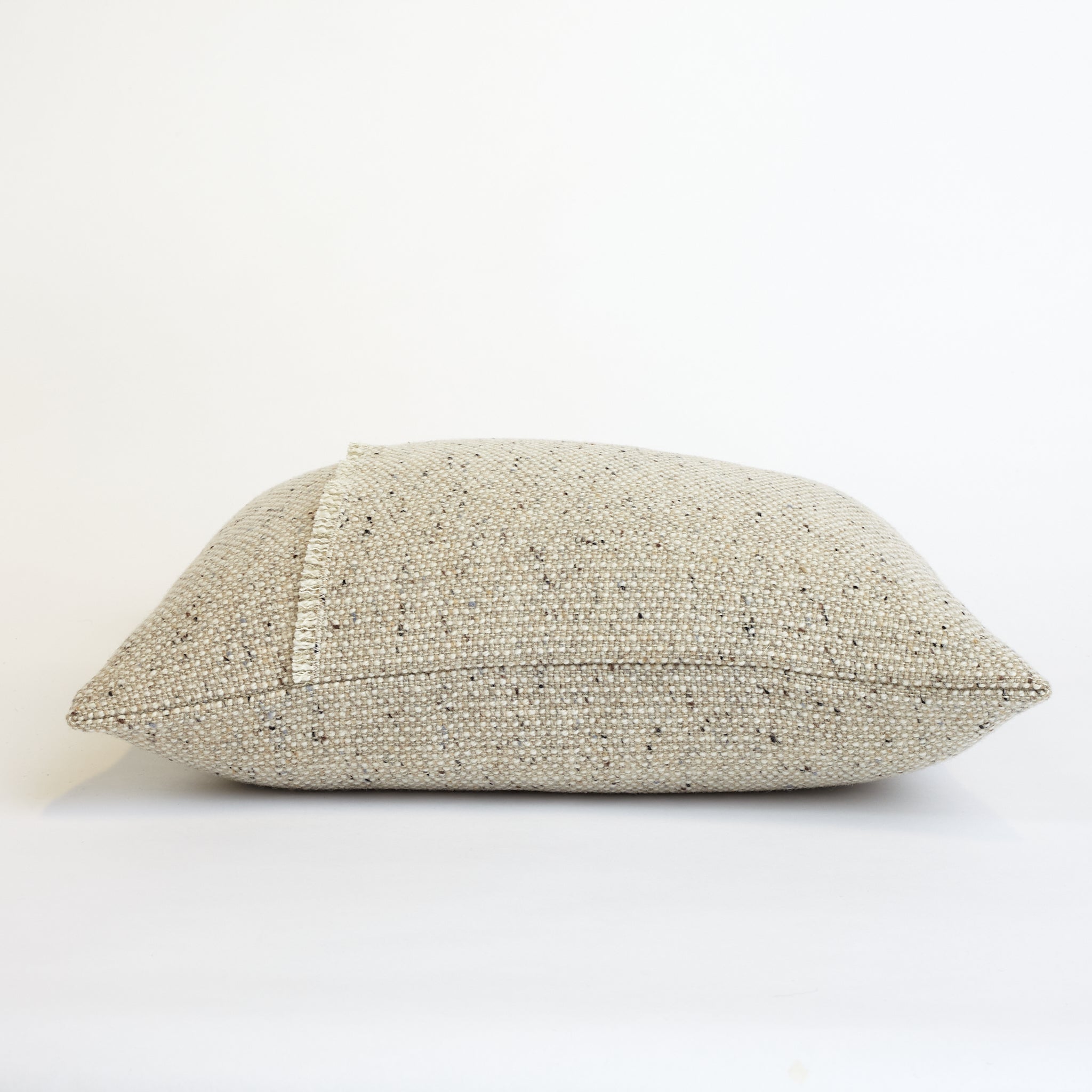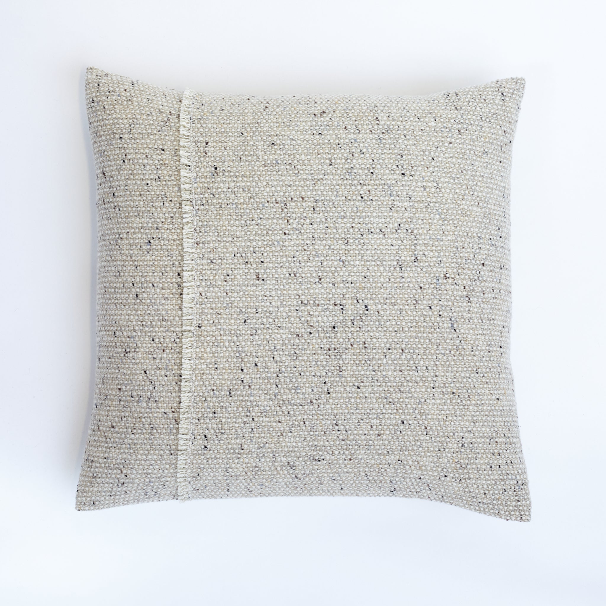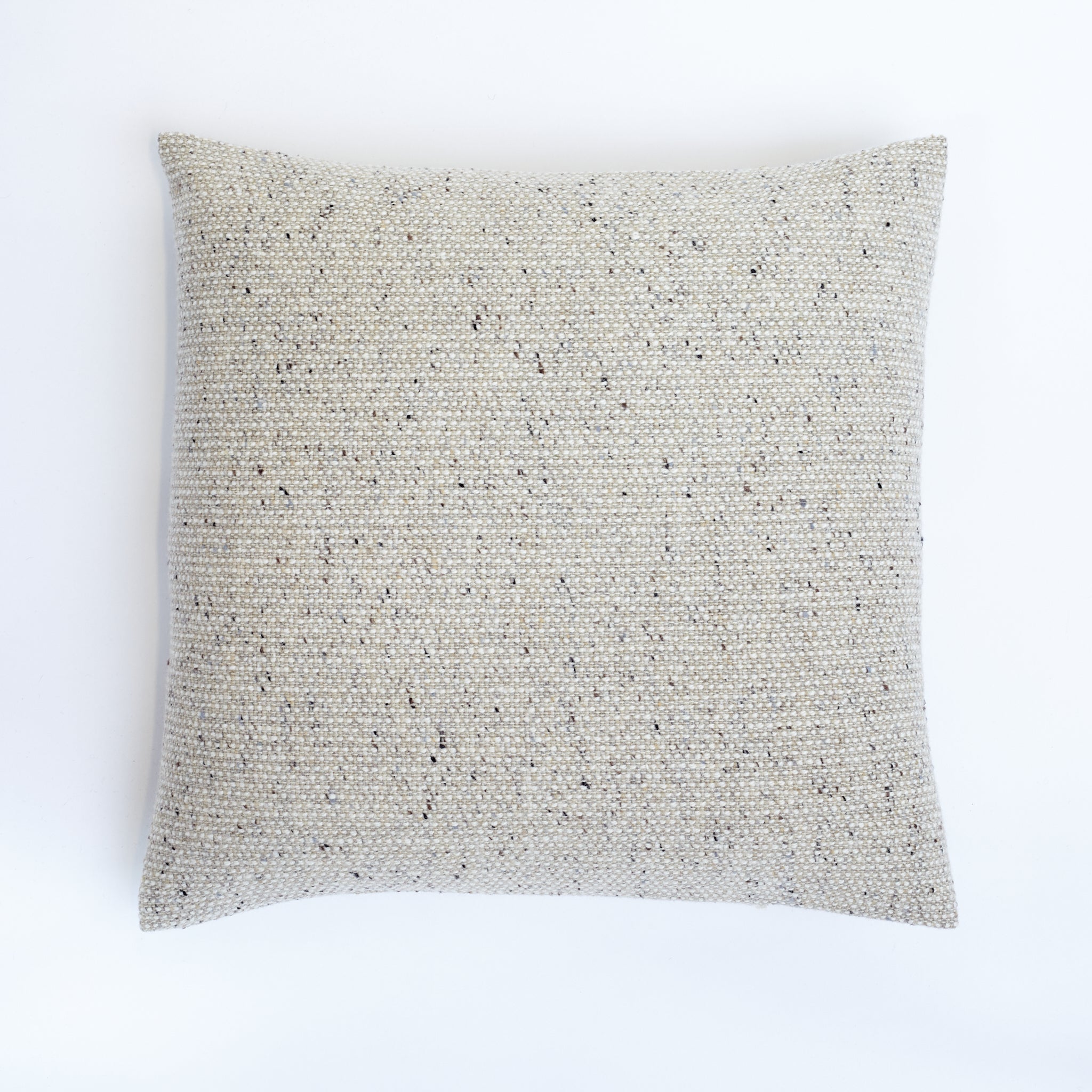 The Almond Pebble Cushion showcases a delicate palette of pale tones, artfully enhanced by subtle greys and warm caramel shades. This harmonious blend is accented with flecks of orange, brown, and black, creating a rich tapestry that echoes the varied landscapes of the mountainside.