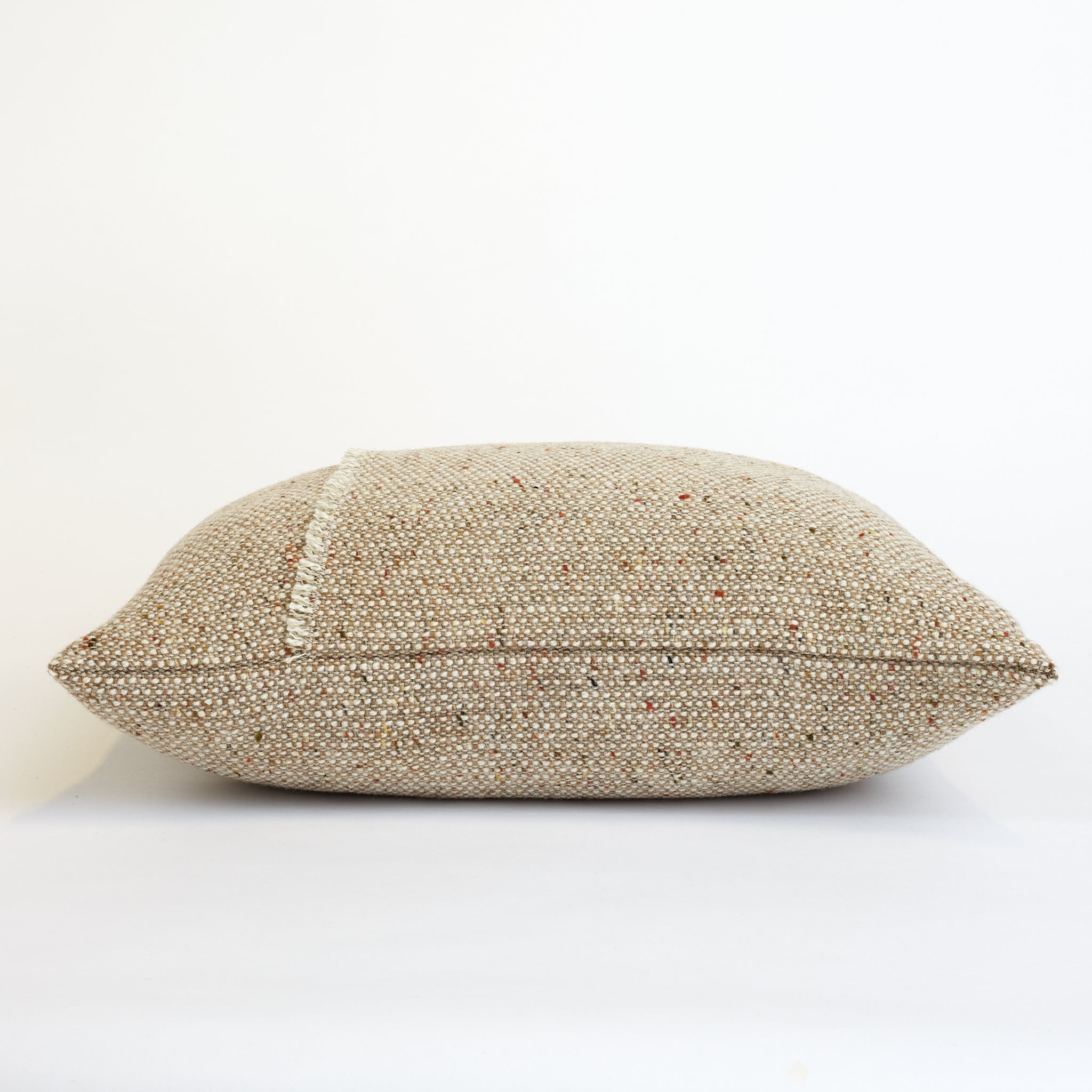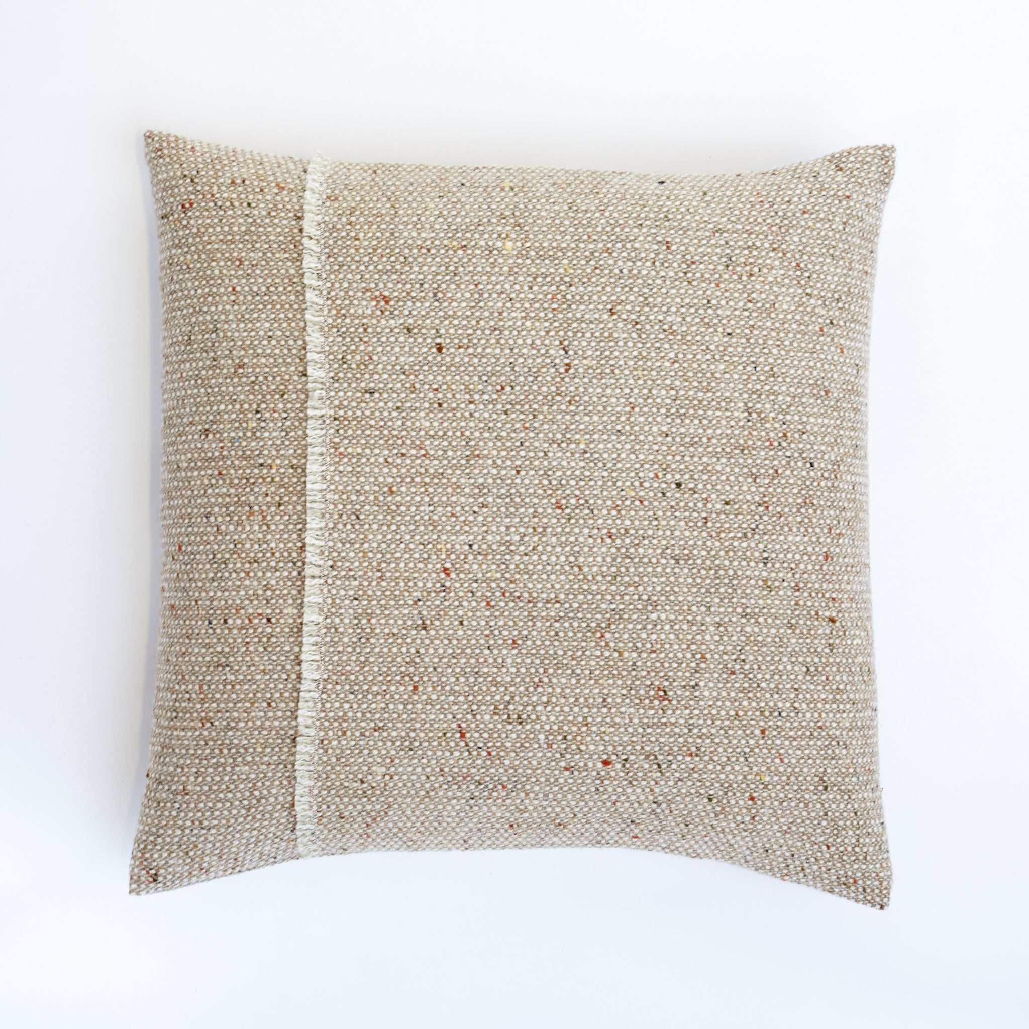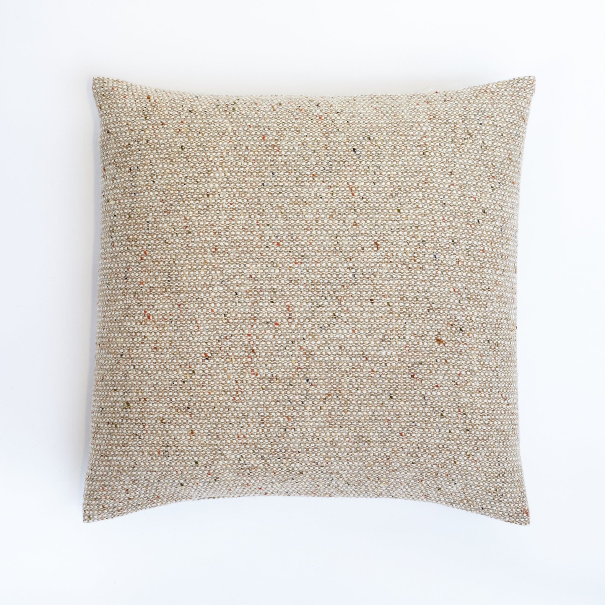 The Oatmeal Pebble cushion offers a warm, neutral base that evokes a sense of comfort and tranquility. This soft hue is beautifully enhanced by subtle flecks of orange, moss green, and rich browns, which blend seamlessly to create a harmonious effect reminiscent of nature's gentle palette.