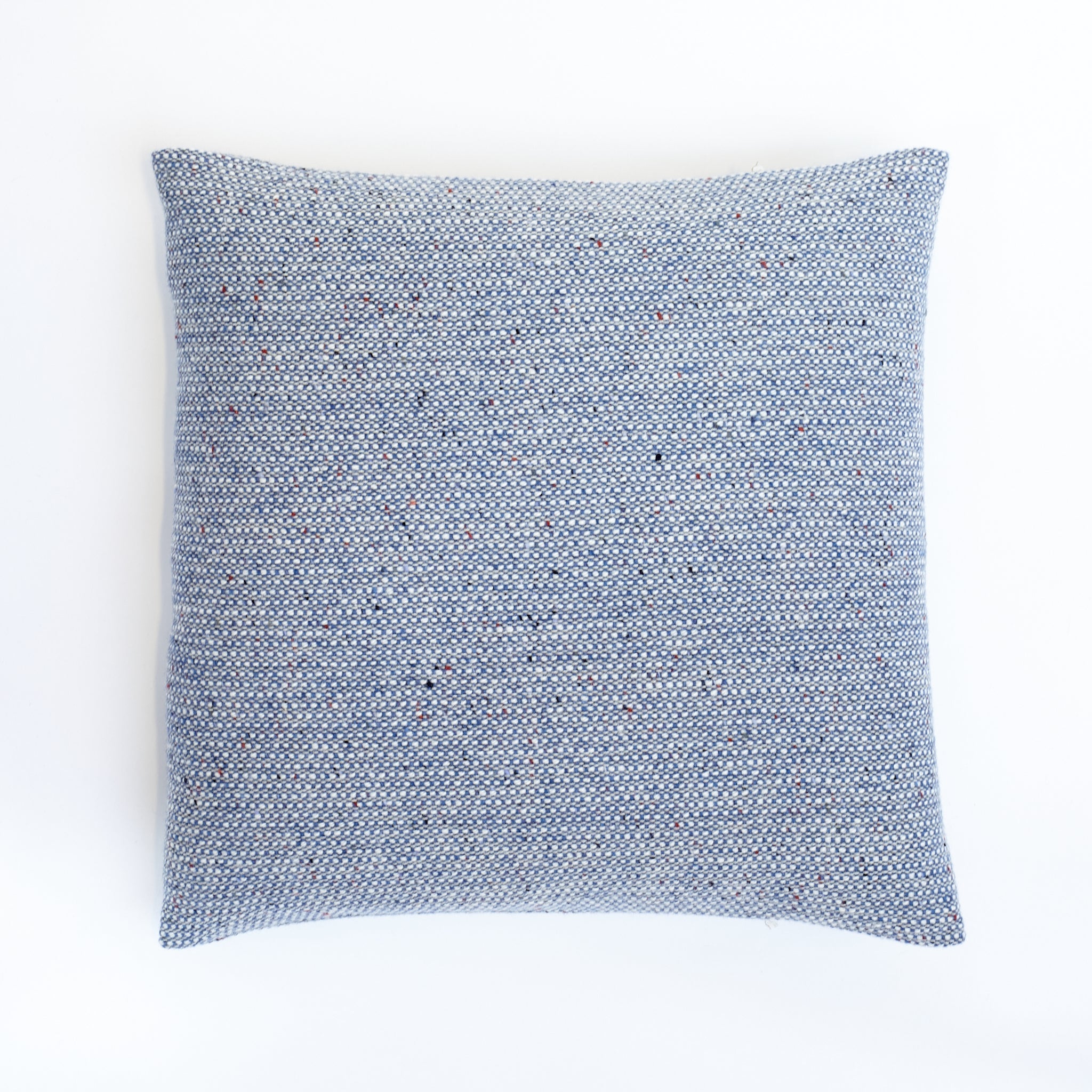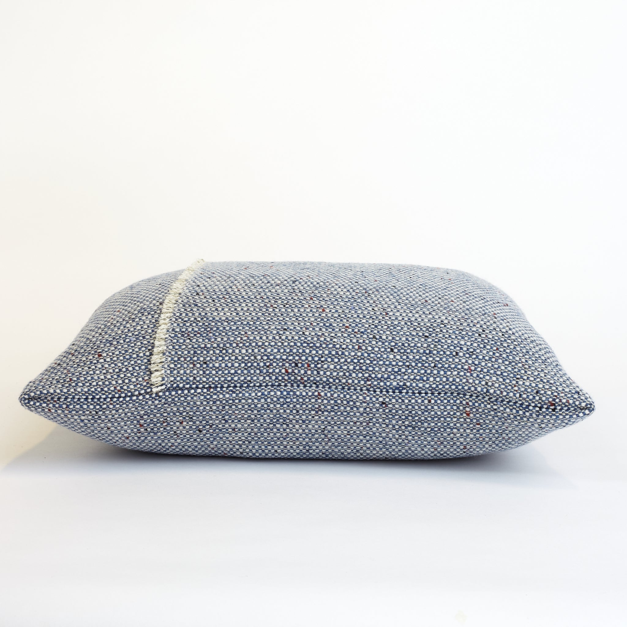 The Sky Pebble cushion introduces a serene colourway that captures the pale, calming blue of clear skies, bringing a light and airy feel to your interior. The softly spun wool yarn adds a luxurious texture, while subtle flecks of natural landscape colours—greens, greys, and warm earthy tones—are delicately woven into the fabric, creating depth and interest.