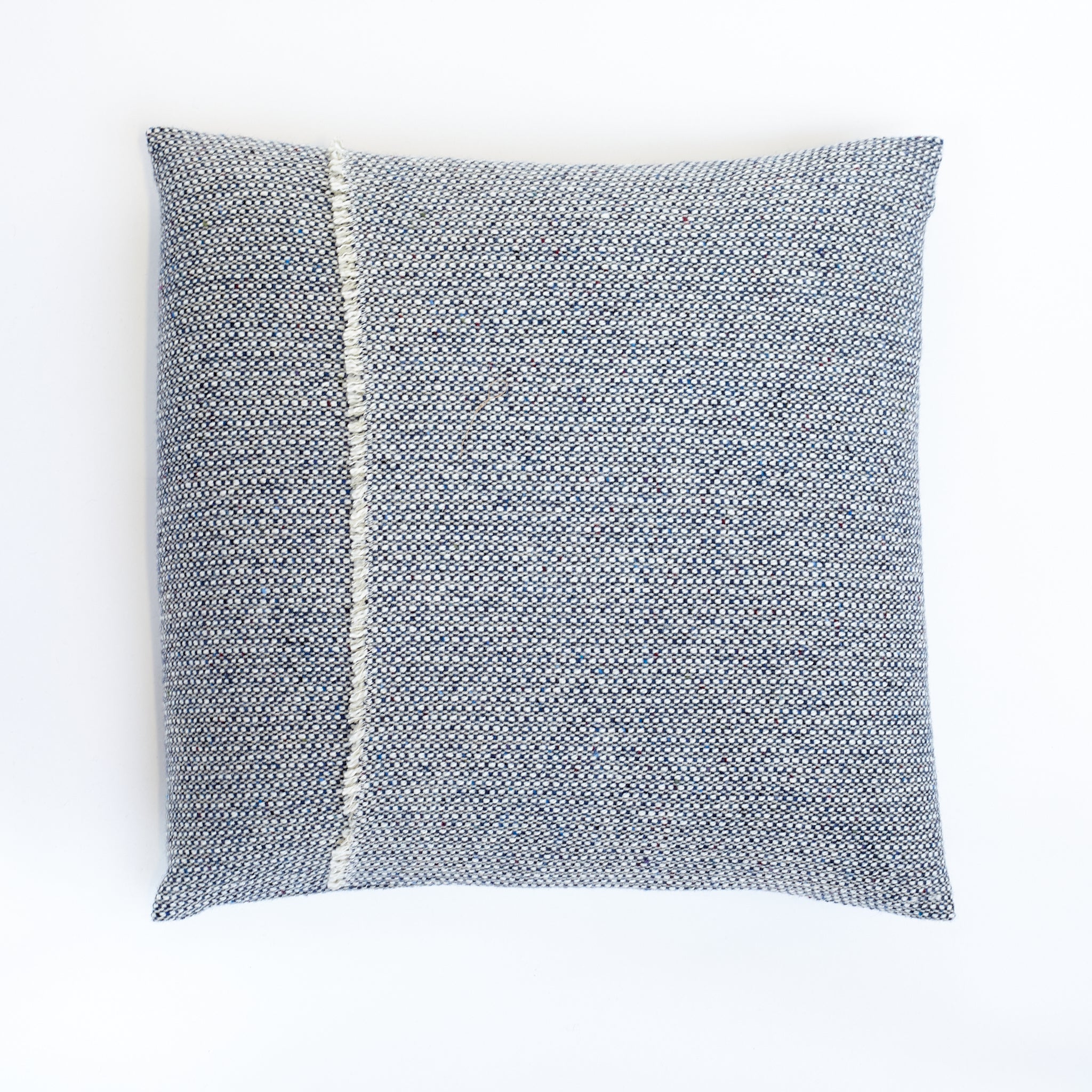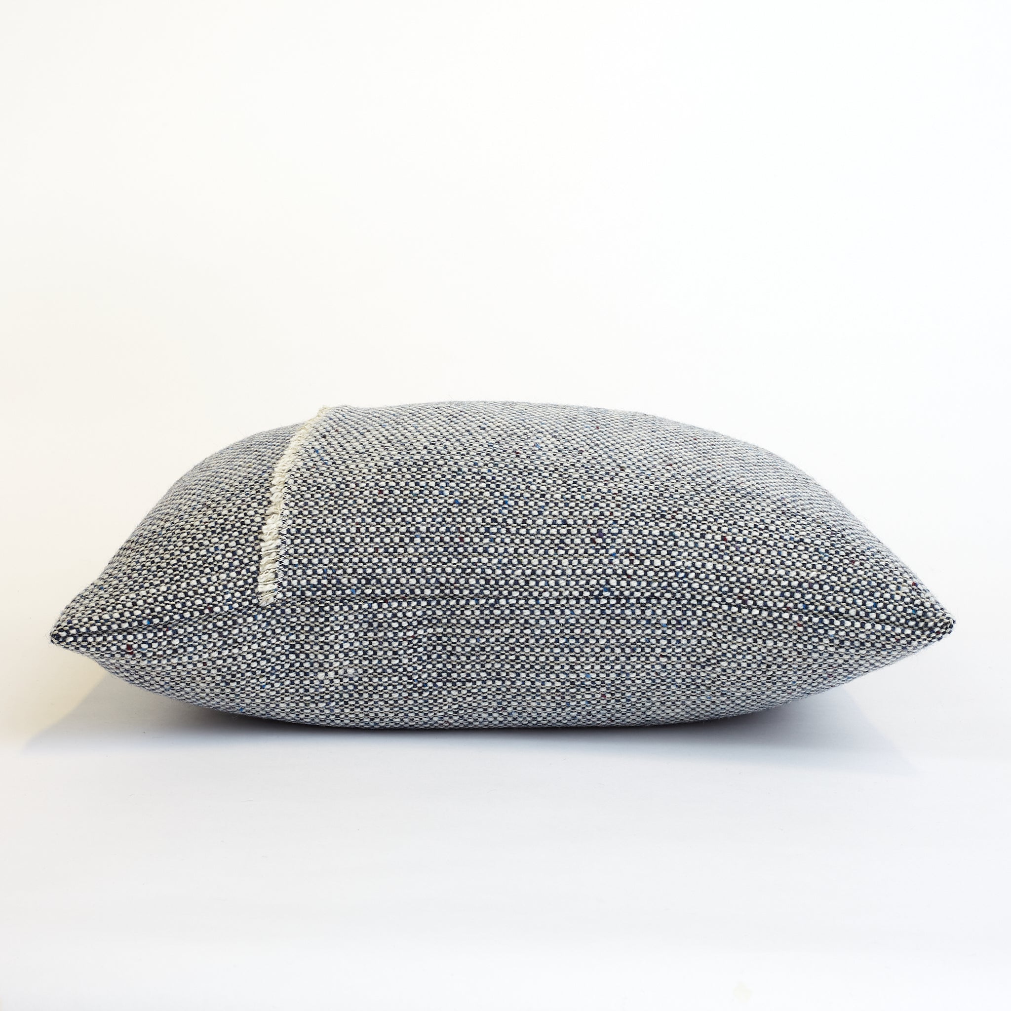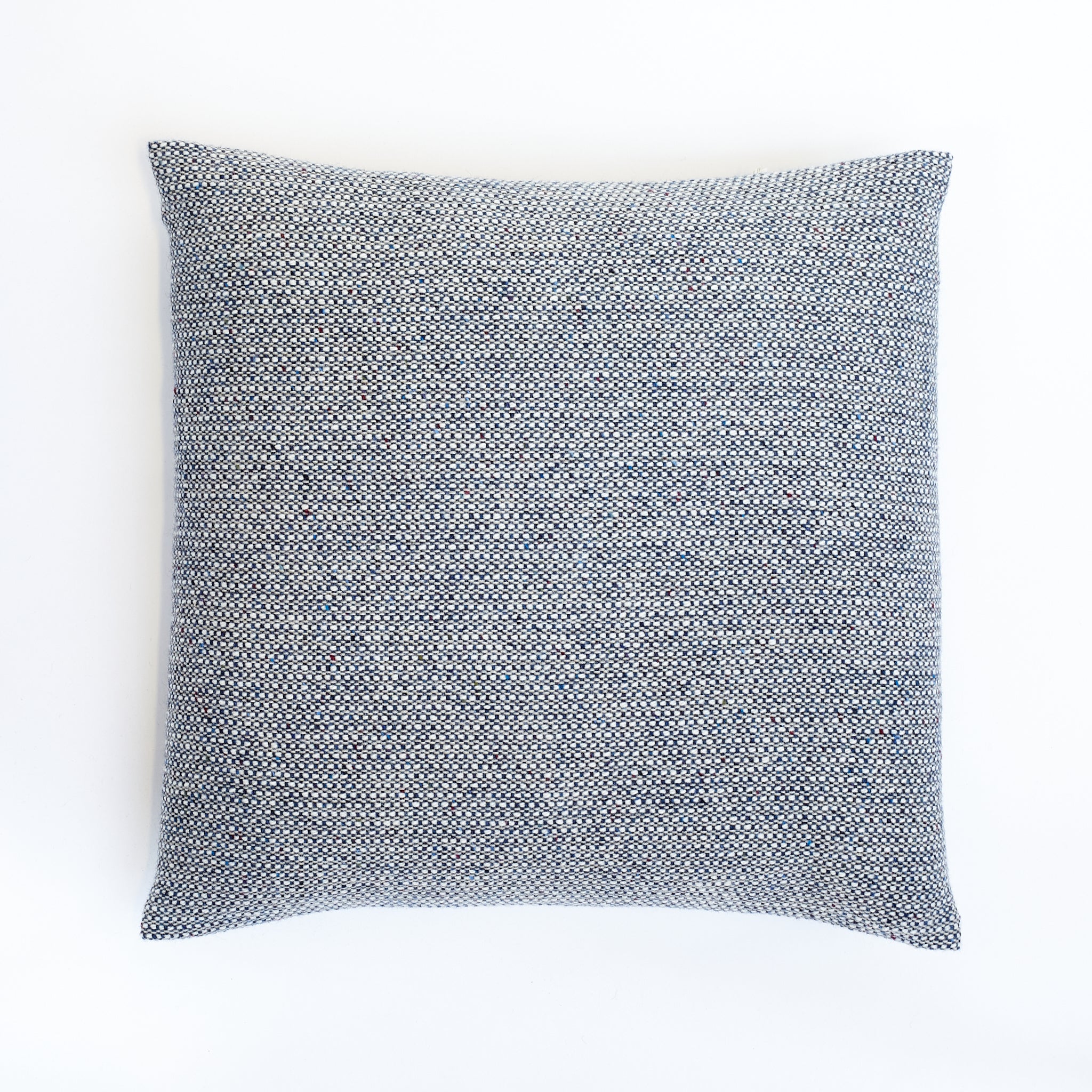 The Mourne Pebble Indigo cushion draws its inspiration from the rich, layered tones of twilight skies and the ever-changing hues of pebbled shorelines. Woven from a natural, undyed yarn contrasted with a deep, inky blue, the fabric is alive with texture and subtle colour variation.