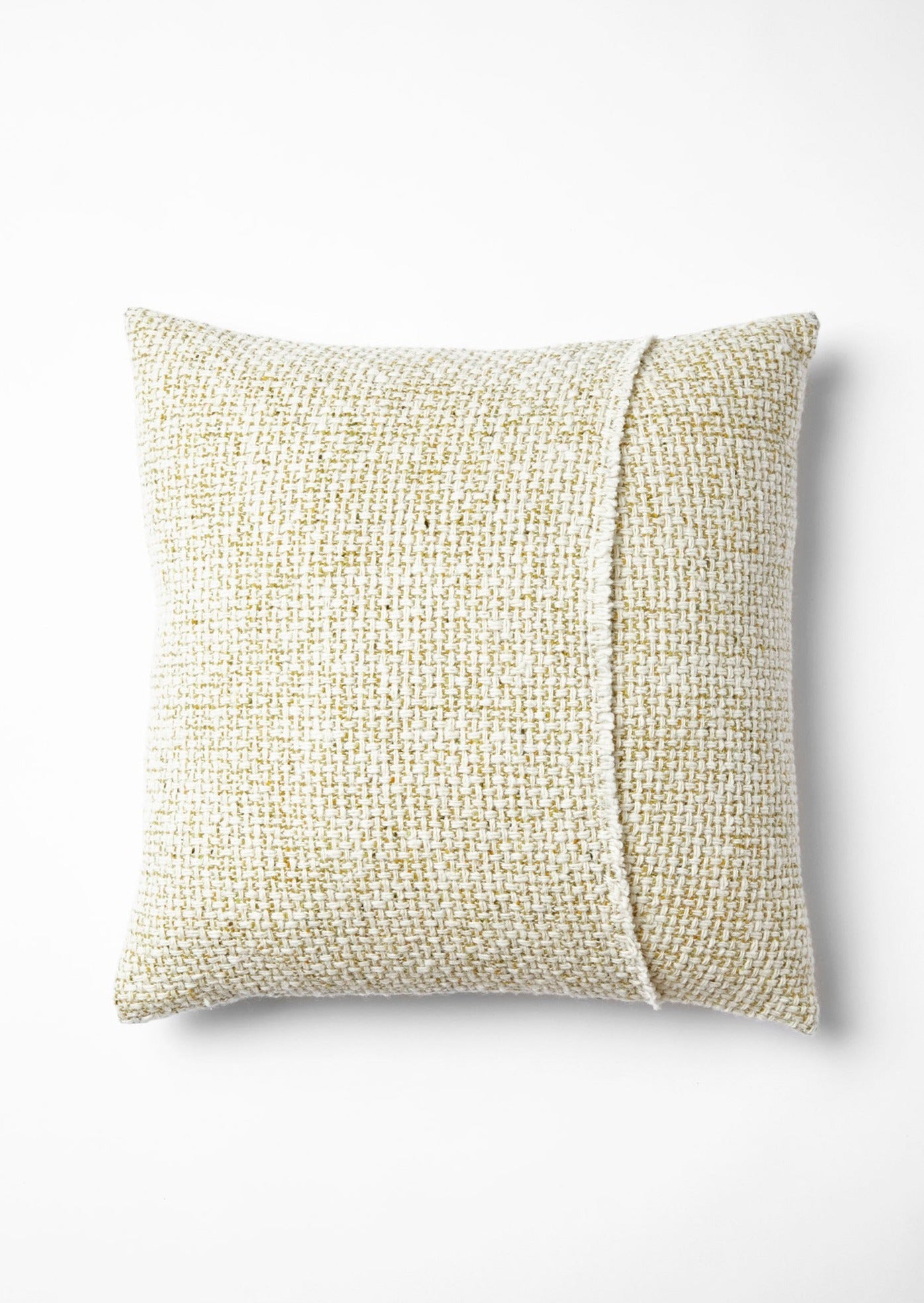 The Gooseberry Mended Tweed cushion brings the essence of lush landscapes into your home, showcasing a harmonious blend of natural and vibrant hues. This exquisitely crafted fabric features a warp of natural yarn in two thicknesses, creating a rich, tactile texture that celebrates the artistry of traditional weaving techniques.